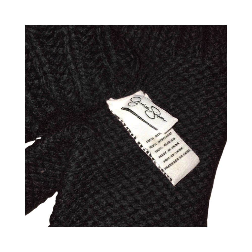 Keep your hands warm and stylish with these black knitted mittens featuring playful pom-pom accents. Made with soft, cozy yarn, these mittens provide excellent insulation against the cold while adding a fun and fashionable touch to your winter outfit. The stretchy ribbed cuffs ensure a snug fit, making them perfect for casual wear, outdoor strolls, or winter adventures.
