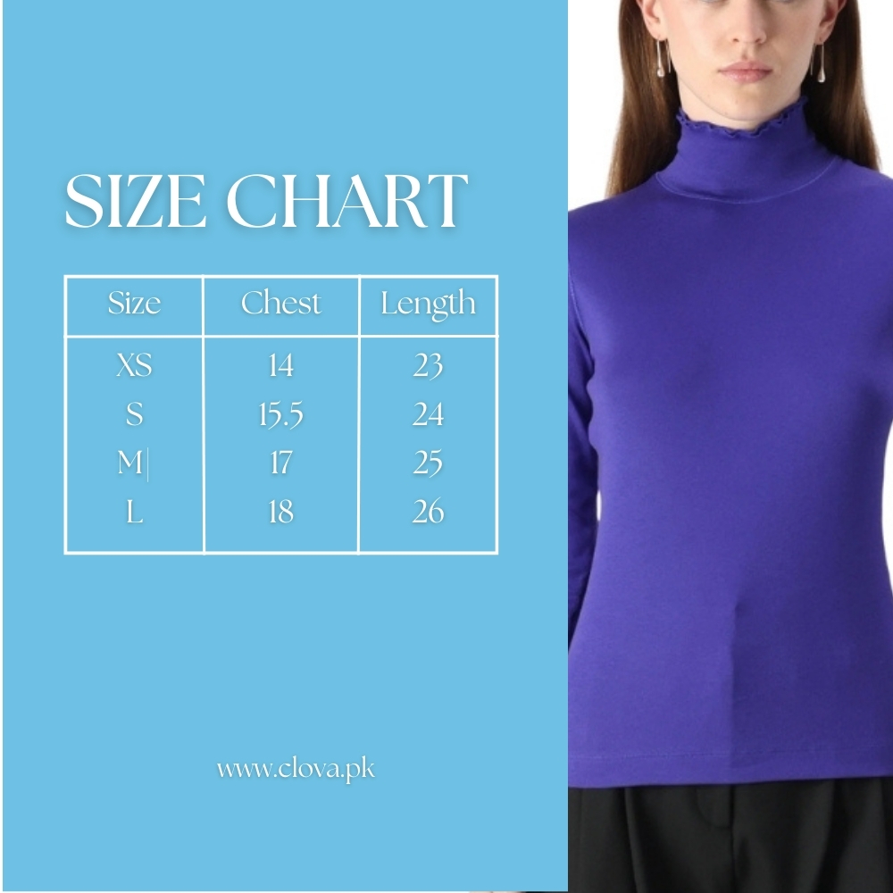 Elevate your everyday style with this Classic Blue High-Neck Top. Designed with a sleek silhouette and full-length sleeves, it offers both comfort and sophistication. The soft, breathable fabric ensures all-day ease, while the high neckline adds a touch of refined elegance, making it versatile for both casual and semi-formal wear.