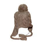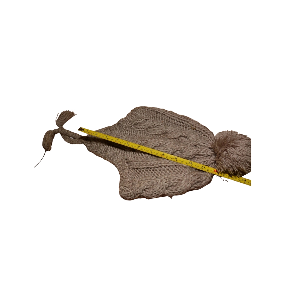 - Keep warm in style with this knitted earflap beanie, featuring a cozy cable-knit design, braided tassels, and a playful pom-pom top. Perfect for chilly winter days, it offers both comfort and a trendy look.