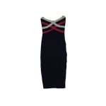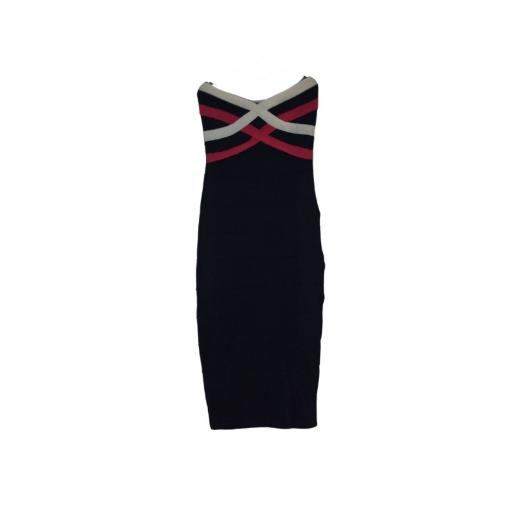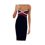 Turn on the glamour with this Elegant Strapless Black Bodycon Midi Dress, accented with a bold red and white stripe design along the neckline. Its curve-hugging silhouette and strapless cut create a sleek, modern look perfect for evening events, parties, or date nights. Crafted from premium stretch fabric, this midi dress ensures a flattering fit while keeping you comfortable and confident. Pair with heels and statement accessories for a striking finish.